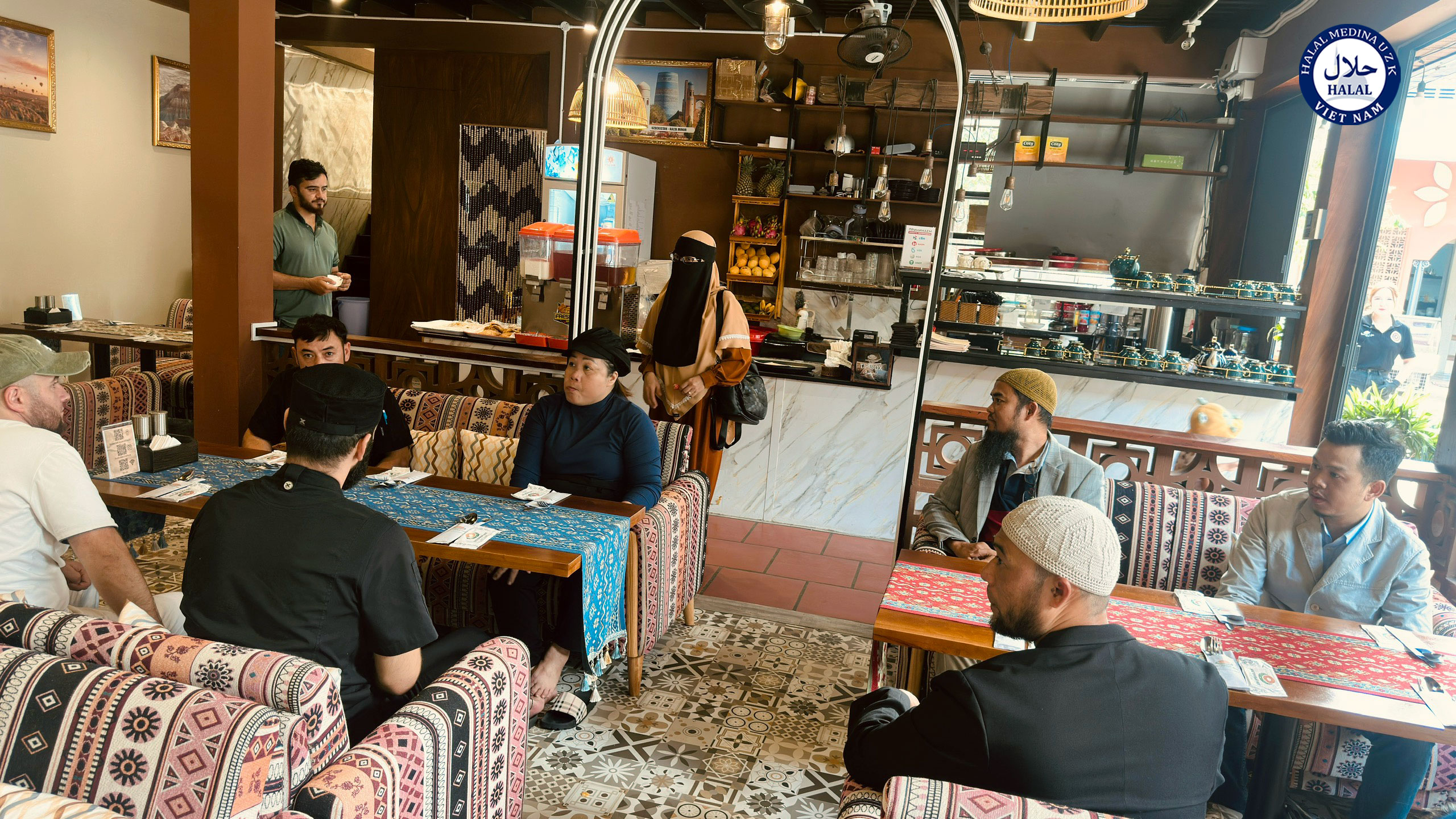 Nhân viên Halal Medina UZK trao đổi cùng nhân sự nhà hàng Восточный уют
